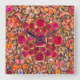 Bright Colourful Pink Red Orange Floral Square Wall Clock