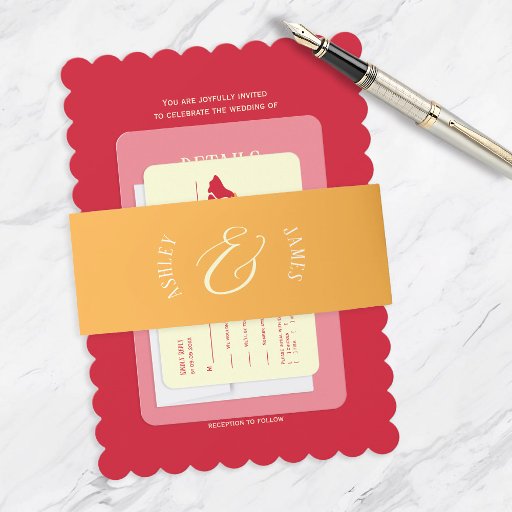 A bright, modern colour palette sets this wedding stationery suite apart from the rest. The design features a stylised flower, and you may customise all of the text.