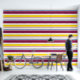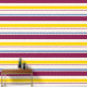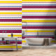 A bright and cheerful wallpaper, to bring a vibrant and buoyant look to any room. The design features bold horizontal stripes in plum red, dark blue and sunny yellow, on a cream background. The summery pattern creates a beach inspired look, like a deck chair or windbreak fabric, or the bright colours of a row of wooden beach huts. The design will stand out as a 'feature wall' within a plainer room. Create this uplifting look in your own home, whether for a contemporary bedroom, a fun and welcoming dining room, or the kids' playroom.