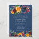 Bright colours design is a multicolor floral border on top left and bottom with a navy blue base and wedding templates in white.