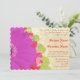 Bright Deep Orange Coral Lime Green Purple Plum Fuschia Purple Gerber Daisy Lace Damask Wedding Invitations