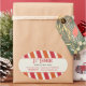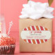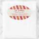 This is a sticker that just says cheerful. This would be a great addition to an identity system for a children-centred business including a kids salon, a sweet shop, ice cream shop or play place. Bright orange and crimson red diagonal stripes give it a bit of whimsy with customised text standing out in a cream panel. Close favour or customer purchase bags, use for promotion or as envelope and package seals. Available in alternate colours with matching products.