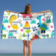 Bright Dinosaur Pattern with Custom Name Beach Towel