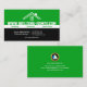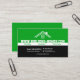 A simple design with a dual tone coloured background. The top green portion has an embedded home outline with its oversize business URL underneath. At the midsection, the white rectangle holds your type of services offered. The black portion below houses all your card's details. A white line demarcates your name and job title on the left against your contact details at the right ; each detail is allocated a bullet point. Near the floor of the card, you have an optional slogan tagline.