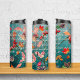 This is our "Autumn Whispers" Inspirational thermal tumbler - a radiant collage that captures the essence of fall's beauty. This tumbler features a captivating design showcasing a vibrant assortment of chestnuts, cones, autumn flowers, maple leaves, dry leaves, and brightly painted acorns carefully arranged on a serene blue turquoise washed surface.