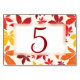 Customise the seasonal Bright Fall Leaves Wedding Table Numbers and to create a different card for each table at your September, October or November Autumn marriage reception, bridal shower or party. These classy and custom autumnal wedding table number cards feature multi-coloured leaves in colours of red, yellow and orange with a white background.