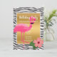 BRIGHT FLAMINGO HIBISCUS BLACK ZEBRA PATTERNED INVITATION