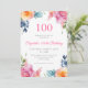 Celebrate your milestone 100th birthday with our bright floral invitations! Featuring a stunning watercolor design of colourful flowers on a clean white background, these invitations are perfect for any springtime or summer celebration. The elegant calligraphy lettering adds a touch of sophistication and charm to your special occasion. Our invitations can be personalised and you can even choose between a digital download or printed invitations, depending on your preference. Whether you're planning an intimate gathering with family and friends or a grand celebration with all your loved ones, our invitations are the perfect way to kick off your birthday festivities.