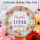 Fun and vibrant colours adorn this personalised paper plate for your 100th Birthday party. These florals were created with watercolor and will go with all kinds of colour schemes. Happy celebrating!