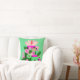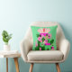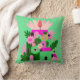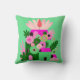 This bright floral accent pillow features a playful mix of pink and green flowers in a cheerful, modern style.