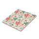Floral pattern with red and pink flowers, green leaves, and dots on a white background. The design feels vibrant and whimsical.