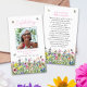 This is an elegant and whimsical memorial prayer card. The design features a beautiful calligraphy font and a lovely brightly coloured field of wildflowers with butterflies, bumble bees and ladybugs.. This funeral prayer card can easily be personalised with your own photo to create a special tribute for your loved one using the template provided. Please contact the designer for any queries regarding this design or for any matching products.