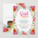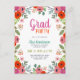 Affordable custom printed graduation party invitations. This fun modern postcard design features a colourful floral border in bright colours. Personalise it with your graduation party details. Add your photo and additional text on the back side. Use the design tools to add photos, customise the text fonts and colours to create your own unique graduation invitation postcards.