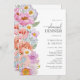 Bright Floral Rehearsal Dinner Invitation. Set the stage for an unforgettable evening with this bold and colourful rehearsal dinner invitation, perfect for spring, summer, or whimsical fall celebrations. A vibrant watercolor side bouquet showcases blush pink, bright fuchsia, orange, and golden yellow peonies, lavender roses, blue delphinium, white and yellow daisies, and a charming mix of wildflowers, all brought to life with artistic detail and joyful energy. A whimsical butterfly tucked among the petals adds a magical finishing touch. Create a lasting impression for your pre-wedding gathering—start designing a piece that reflects the heart of your celebration today!