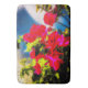 This Bath Mat will add some colour to your life. The artwork is an original abstract photograph by ZoeSPEAK of a bougainvillea bush in the afternoon sunlight. The flowers on the bush are actually tiny and white. The brightly coloured parts which surround them are called bracts. In this photo, the bracts are a deep hot pink, almost glowing. Green leaves and a cool blue shadow on a pale yellow stucco wall complete this colourful image.