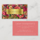 Elevate your brand with this modern design as you attend business meetings and networking events this year. This business card contains a gold rectangle to help your name pop. This business card template highlights your name, on top of bright flowers floral background. This is the business card template that can be personalised with your details, your career title to jump start your connections and business into the future. Personalise as you need with your own profession. The bright pink back side provides a nice contrast with the white print allowing this business card to stand out in a crowd and leave a lasting impression.