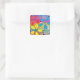 Bold and bright flowers intertwine their stems to showcase blue, red, and yellow flowers in a modern design.