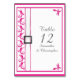 Pretty chic elegant modern bright dark fuchsia pink and white filigree lace vintage damask pattern with white faux satin ribbon and silver buckle. This is a colourful contemporary stylish classic wedding or special occasion table number on a custom background. Customise to choose your background from a range of custom colours to match with your coordinated wedding stationery suite and other bridal stationery essentials, easily personalised with your text to the templates to create your own unique professional luxurious simple plain and minimalist lacy design for your special marriage or other occasions or celebrations. Visit the PERSONALIZED _WEDDINGS STORE for matching products.