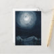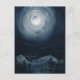 Bright full moon star mountain dark blue night sky postcard