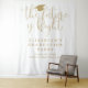 This elegant gold script graduation party photo booth backdrop can be personalised with your celebration details. Designed by Thisisnotme©