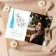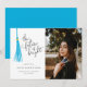 Modern and whimsical graduation photo announcement card featuring an illustration of a sky blue tassel with a hand written typography text that says "the future is bright."