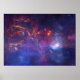 A colourful and luminous photograph of a galaxy. A combination of bright colours and ethereal plasma formations make this beautiful outer space photo a pleasure to behold. A mixture of vivid purples blues orange and red all swirling and mixing together with some glowing accents scattered around creates a wonderful abstract image.