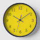 I was looking for a cheerful, easy to read clock for my bathroom. This yellow clock fits the bill. Good quality. The bright yellow background with black hands make it easy to read from a distance. Pattern is crisp and clear. No blurs here. I'd order again.