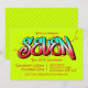 A messy bright neon green graffiti invitation fit for a seven 7 year old.