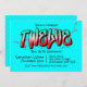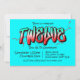 A messy bright blue graffiti invitation fit for a twelve 12 year old.