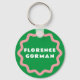 A wavy corner badge shape in candy pink looks fresh and preppy on Kelly green with simple editable text for easy customisation making this key chain tag a design forward choice for any creative.
