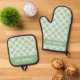 Bright Green and Winter White Snowflake Pattern Oven Mitt & Pot Holder Set