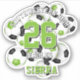 This team colours soccer sticker for girls or boys features the image of a bunch of varied size bright green, black and white soccer balls, upon which you can customise the player's name, jersey number, team name and mascot name - by katz_d_zynes