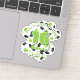 This team colours soccer sticker for girls or boys features the image of a bunch of varied size bright green, black and white soccer balls, upon which you can customise the player's name, jersey number, team name and mascot name - by katz_d_zynes