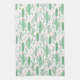 Bright Green Cactus Succulent Blossoms Pattern Tea Towel