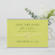 Make a bold first impression with this bright green wedding save the date card, designed for couples who love modern style and vibrant colour. Featuring a minimalist layout and an elegant gold rope heart symbolising unity, this design balances playfulness with meaning. The clean typography and fresh palette make it perfect for spring, summer, or destination weddings. Customise with your names, date, and details to set the tone for your unique celebration. Ideal for couples who want an unforgettable, colourful announcement!