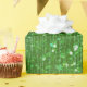 A gorgeous bright green wrapping paper with a glittery curtain pattern.