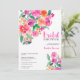 Bright hot pink fall floral script bridal shower invitation featuring pretty hand painted bold pink, orange red blooms flowers and greenery. Perfect for fall boho themed bridal shower garden party. With a modern script typography.