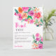 Bright hot pink fall floral script bridal shower thank you card