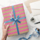 Bright Hot Summer Pink Stripes Faux Brown Kraft Wrapping Paper