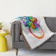 A quality printed throw has its advantages. This is a much finer weave throw than its loopier cousins, and though lighter, it is worth the investment for custom room accessorizing. The back is much prettier than the typical brown, and the fringe on the long sides very vivid, the selvage nicely done. Before photographing, I washed the throw in cold water, delicate, with a thicker woven throw the same size. On tumble dry low, this throw was dry in half the time as the other. This is a very practical quality if you use throws for furniture covers or to wrap up in frequently. The sleekness of the fabric makes it a great layer for accenting or protecting without the feeling of sitting on too much stuff. Perfect for napping or when you feel a light chill coming on. The color printing is beautiful and on this fabric, matched the design and color of my Photoshop image. This is an advantage for blending room fabrics and colors. The fringe on the short sides prints the colors from the design image and therefore varies from the side fringe. I streaked a white fractal line through the plaid pattern to give the illusion of weaving. This printed as crisp as an illusory thread, and put some white in the short side fringe, showing another advantage of print vs loomed- for artistic purposes, line lines, detail, and color integrity can be planned and preserved. My loomed throws have color limitations and more of a needlepoint texture. Print throws reproduce an exact image. The throw felt a little stiff straight out of the package, but this went away in the first delicate wash. Of course I searched the wash water for ink or bleeding and there was none.