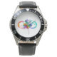 My husband loves the watch, he likes the dial, the graphics, the band, and it keeps perfect time.