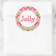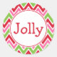 A bright pink, green and red chevron pattern decorates these jolly holiday stickers. The design is from original art.