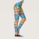 These leggings have a mid-century modern design of bright colours that make rounded rectangles with other rectangles inside formed by a collection of lines.