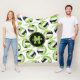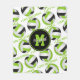 This cute volleyball themed fleece blanket features a mirrored pattern of volleyballs with lime, black and white panels and the sporty font text "I love volleyball" in lime that stretches between the angled rows of volleyballs - athlete name and monogram can be personalised on the large overlying circle pendant - background is customisable white - easily delete the "I love volleyball" text lines, if desired, or replace the monogram with the player's varsity letter or jersey number - by katz_d_zynes