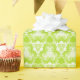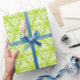 Clusters of intricate, bright lime green swirls in a triangle pattern cover this versatile gift wrap, perfect for both high quality gift presentation and diy craft projects