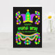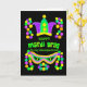 A vibrantly coloured Mardi Gras Greeting Card for Grandparents, with a crown, a mask and a string of beads in bright green, purple and yellow on a black background. You can change the inside message if you wish.