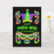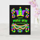 A vibrantly coloured Mardi Gras Greeting Card for a Parents, with a crown, a mask and a string of beads in bright green, purple and yellow on a black background. You can change the inside message if you wish.