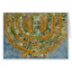 The original artwork for this menorah is a mixed-media painting created with acrylic paint, modelling paste, and paper by contemporary Jewish artist Meredith Gould.