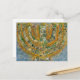 The original artwork for this menorah is a mixed-media painting created with acrylic paint, modelling paste, and paper by contemporary Jewish artist Meredith Gould.