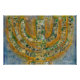 The original artwork for this menorah is a mixed-media painting created with acrylic paint, modelling paste, and paper by contemporary Jewish artist Meredith Gould.